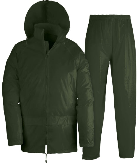 Jakna in hlače iz trpežne vodoodporne ohlapne tkanine.