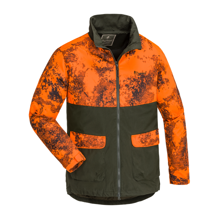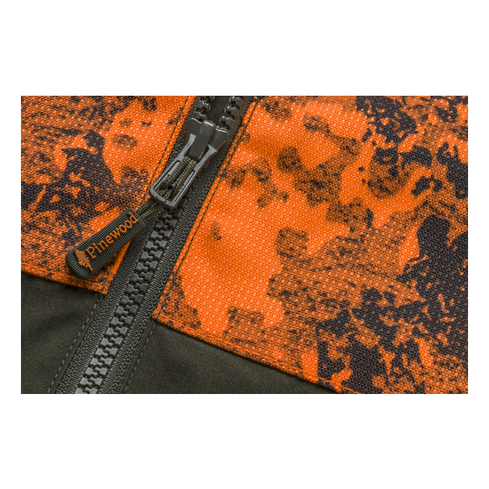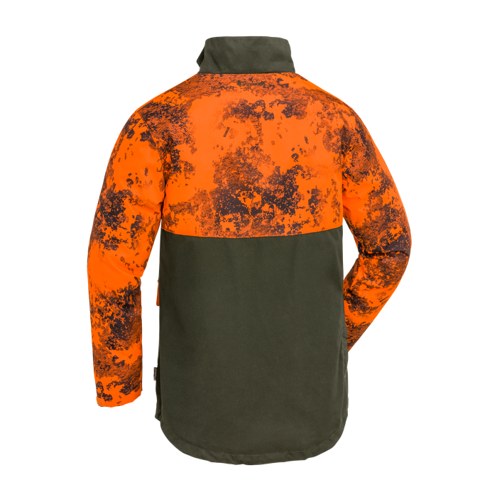 Čvrsta in trpežna jakna, ki zdrži zelo trnato goščavo. Izredno trpežna na zgornjem delu in rokah. Vodoodbojen. Podložena z mrežico High-Ventilation™ za dodatno udobje. Ojačana z našim vzdržljivim TC1200™. Žepi z mehom za npr. strelivo, zapirajo se z zaponko. Pokrov žepa lahko pritrdite tudi z zaponko v žepu. Notranji žep in zadnji žep. Oranžna maskirna obleka z visoko vidljivostjo za varnost. Obdelano z organsko impregnacijo Bionic Finish® Eco za dodatne lastnosti odbijanja vode in umazanije. 65% poliester, 35% bombaž, kontrasti 100% poliester.