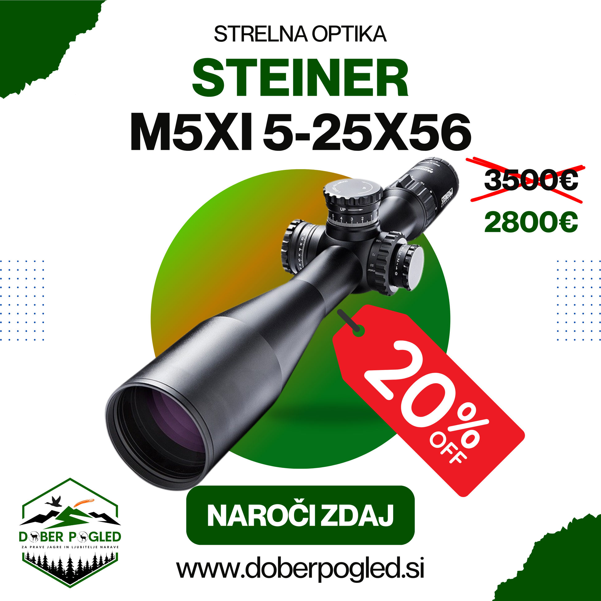 Serija M5Xi, izdelana v Nemčiji, ima inženirske in optične sisteme svetovnega razreda, izdelane po strogih vojaških specifikacijah in natančno oblikovane za zmago – na bojišču ali v tekmovanju. 5-25x je ultimativni ostrostrelni daljnogled za platforme velikega dosega in velike kalibre. Visoka moč in enakovredna nadmorska višina povečata vaš doseg preko 1500 metrov z izjemno vidljivostjo tudi pri najšibši svetlobi.
