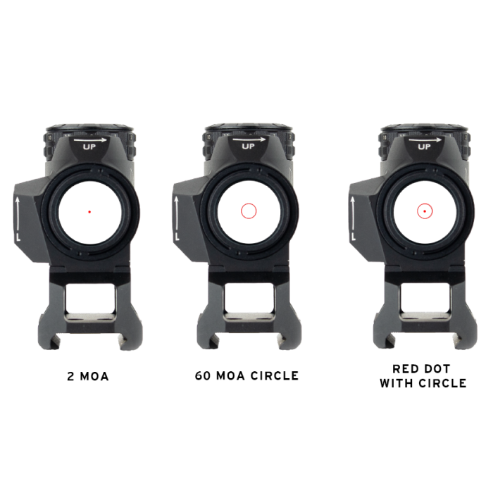 Na tehtnici tehta le 5,36 oz, zato je enota tudi neverjetno lahka. Uporabniki lahko izbirajo med 11 stopnjami osvetlitve prek digitalnih gumbov, 9 dnevnimi/nočnimi načini in 2 načinoma, združljivima z nočnim vidom, tudi med delom z rokavicami.